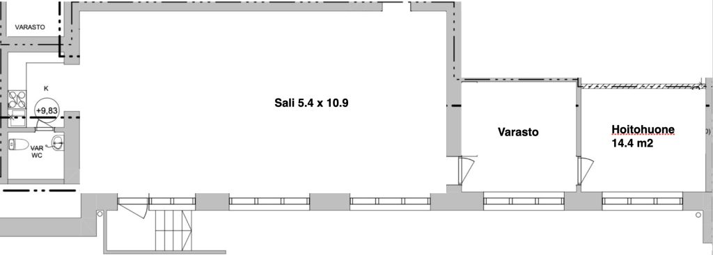 - Pukuhuone/varasto. Lisäksi erillistä hoitohuonetta voi käyttää pukutilana.