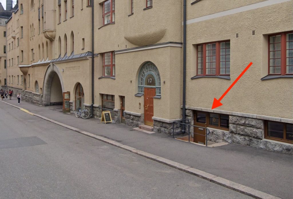 Albertinkadulta johtaa lyhyet portaat alas suoraan katutasossa olevalle sisäänkäynnillemme.
